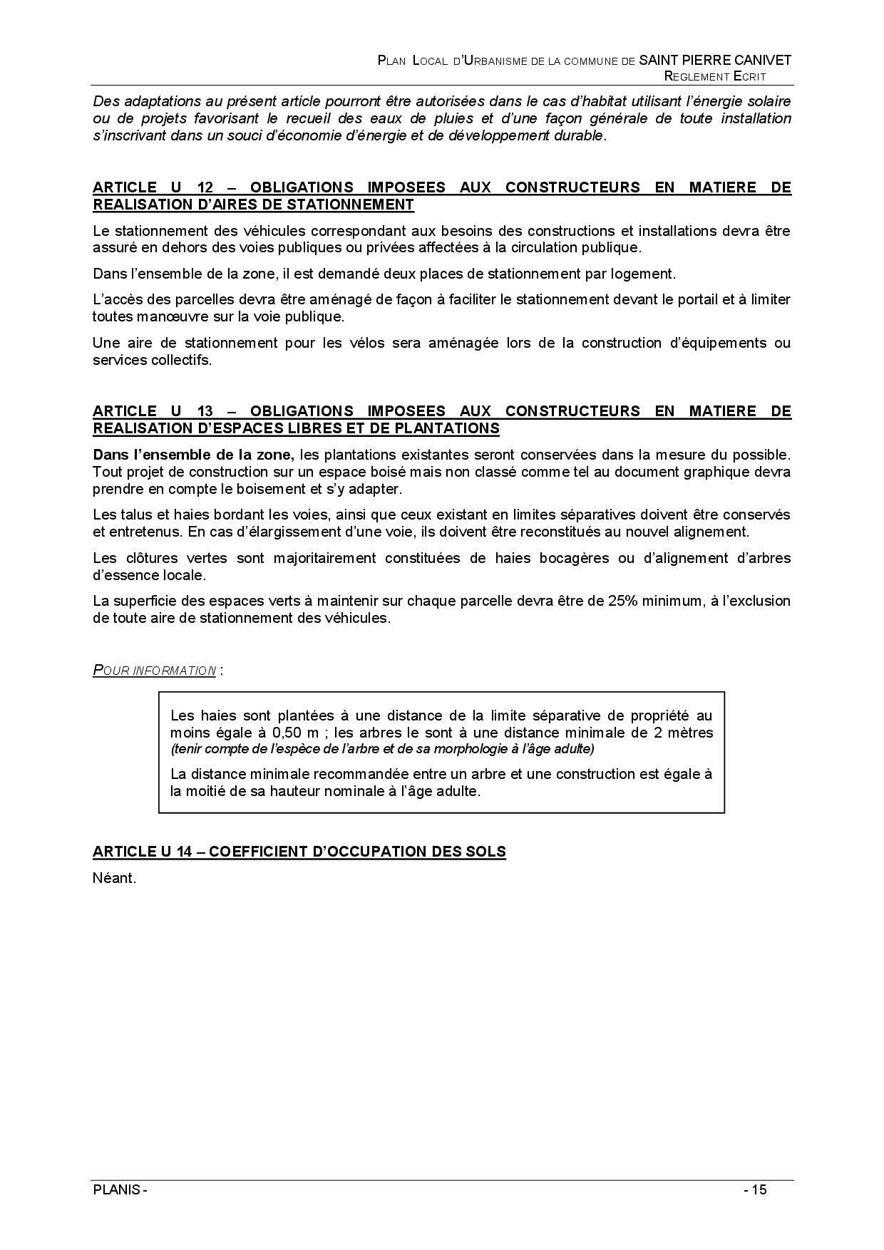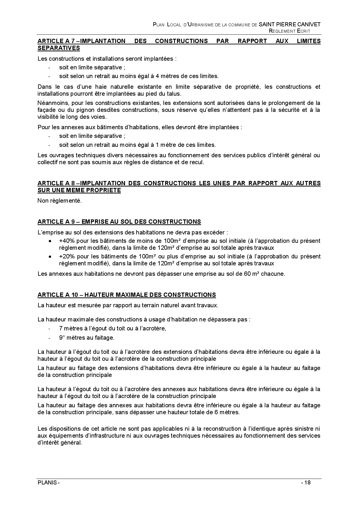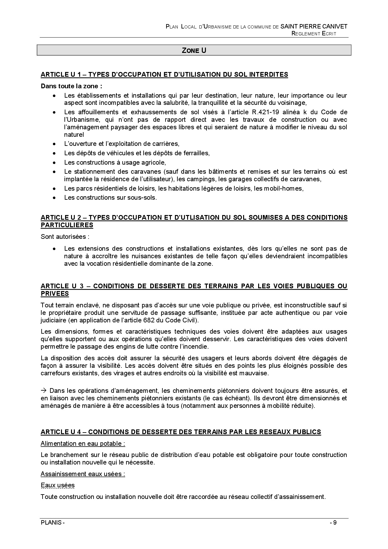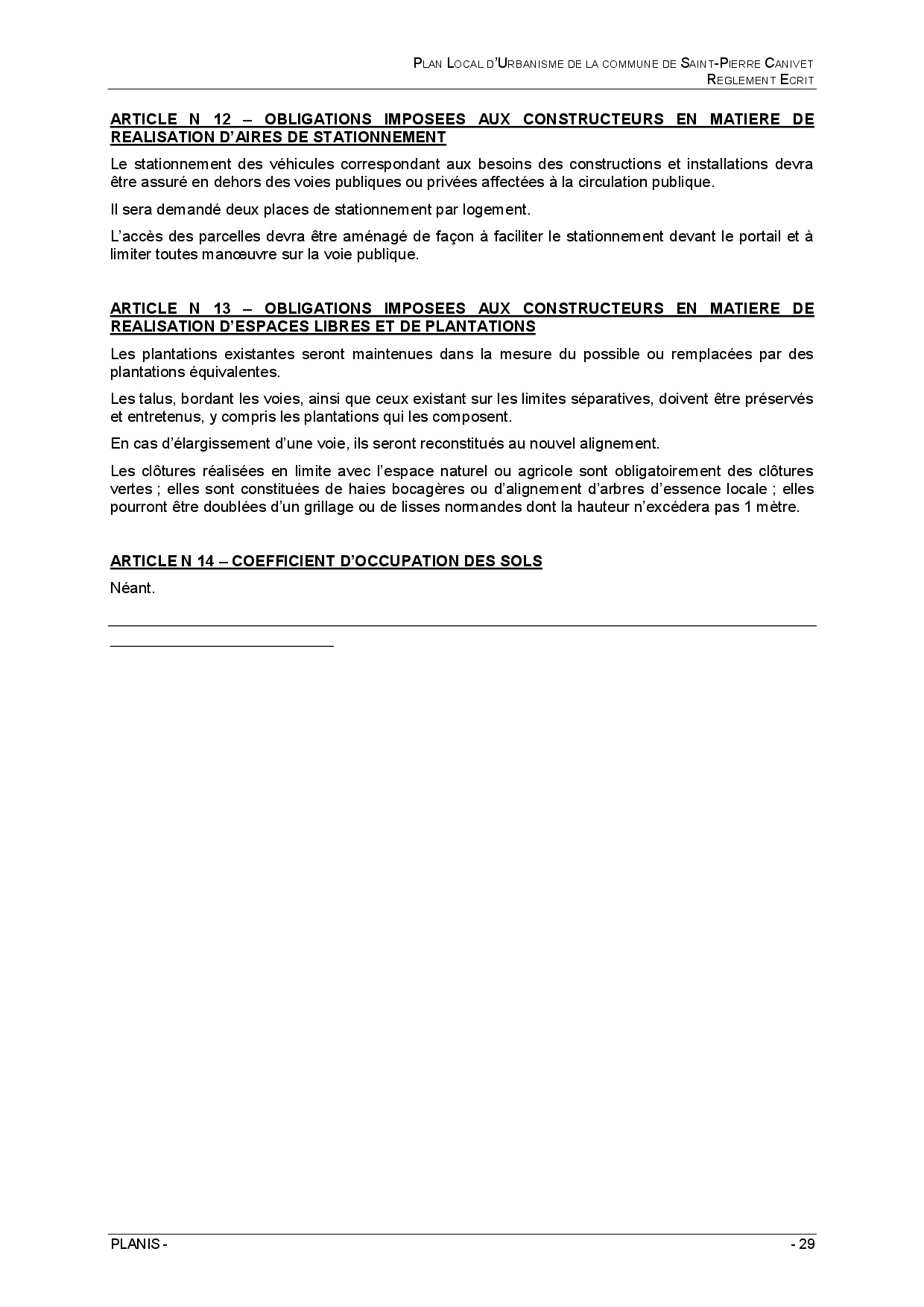 Le plan local d’urbanisme de la commune de Saint Pierre-Canivet a été adopté par le conseil municipal le 26 avril 2010 puis modifié par la délibération n°2016-34 du 12 décembre 2016.
