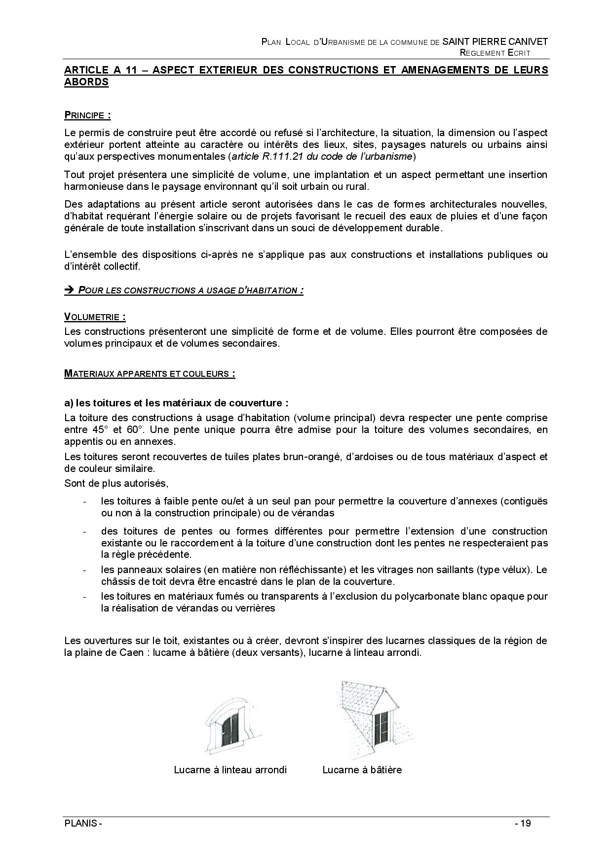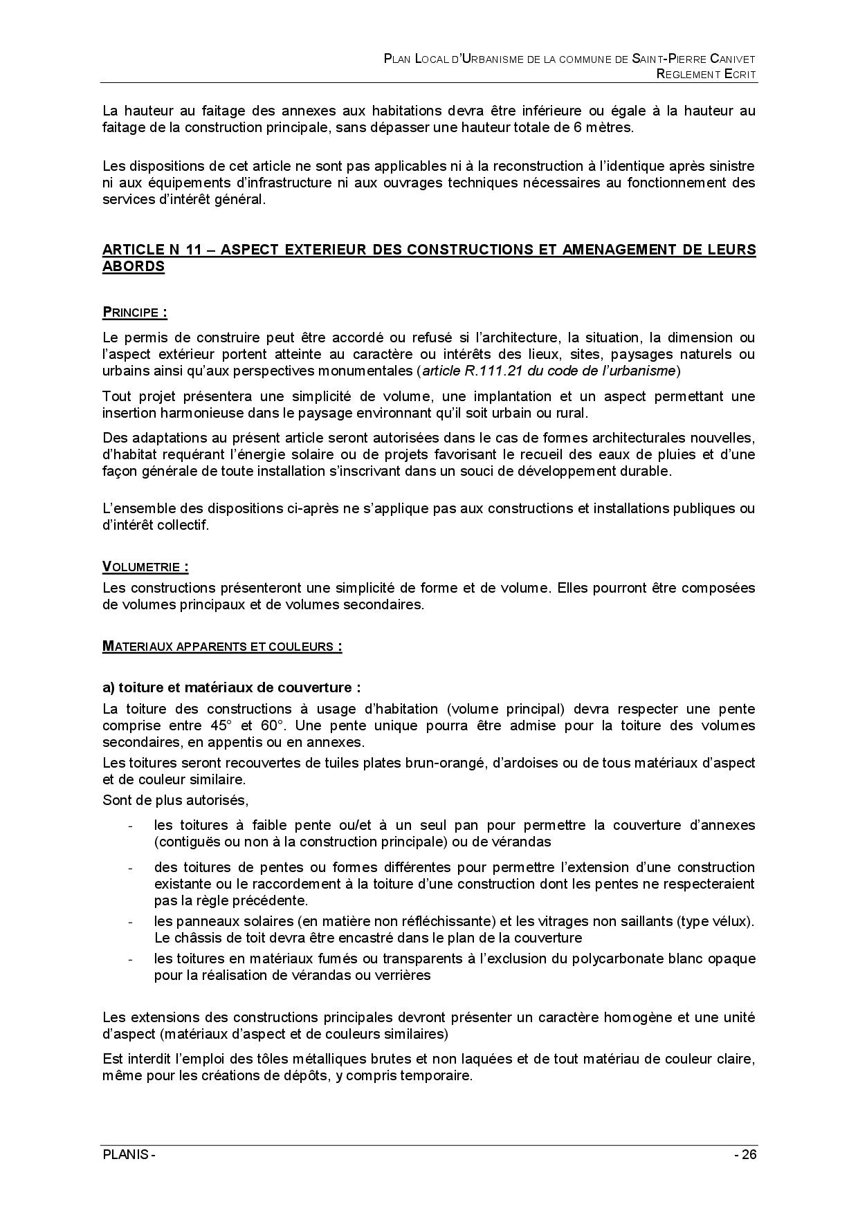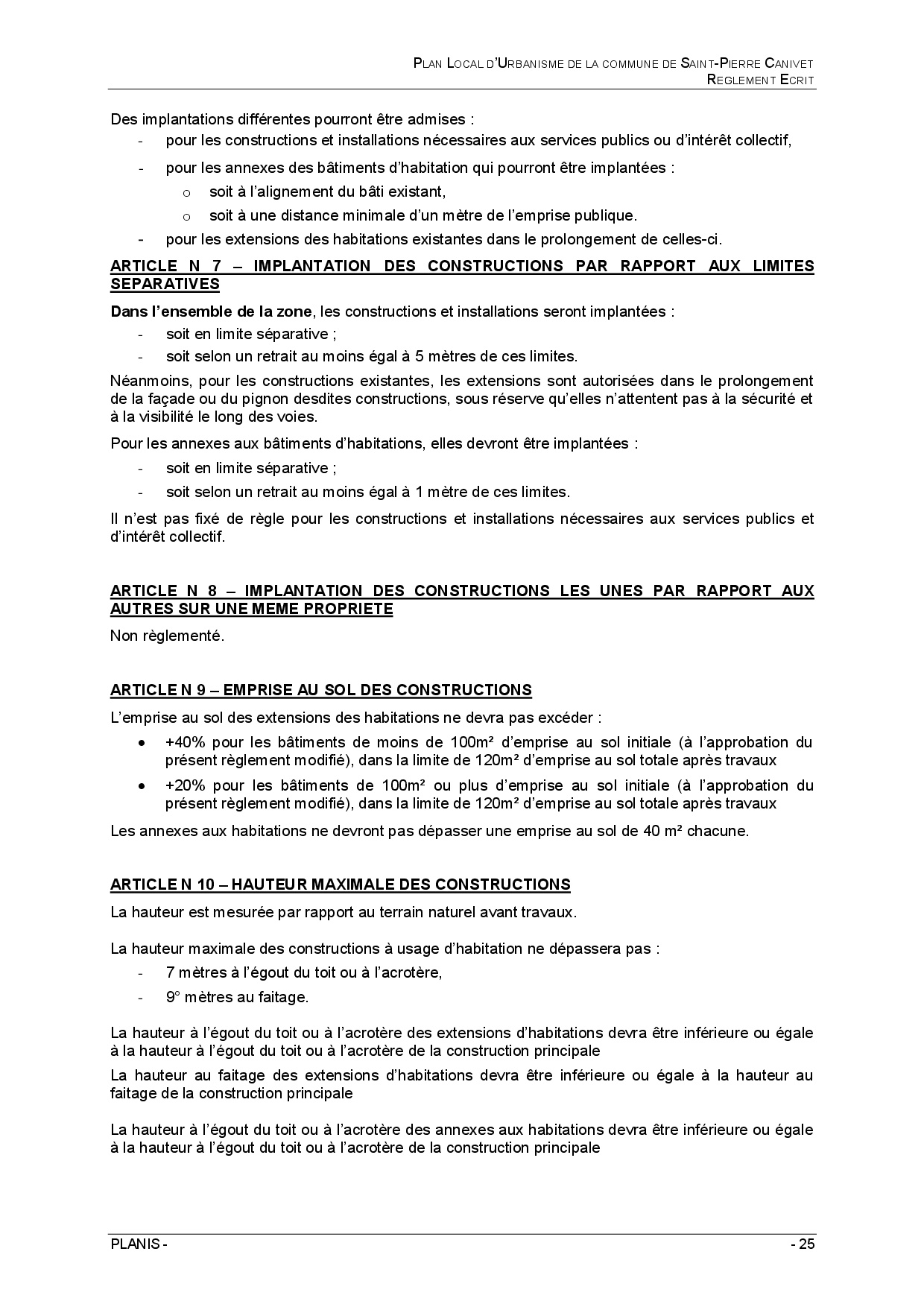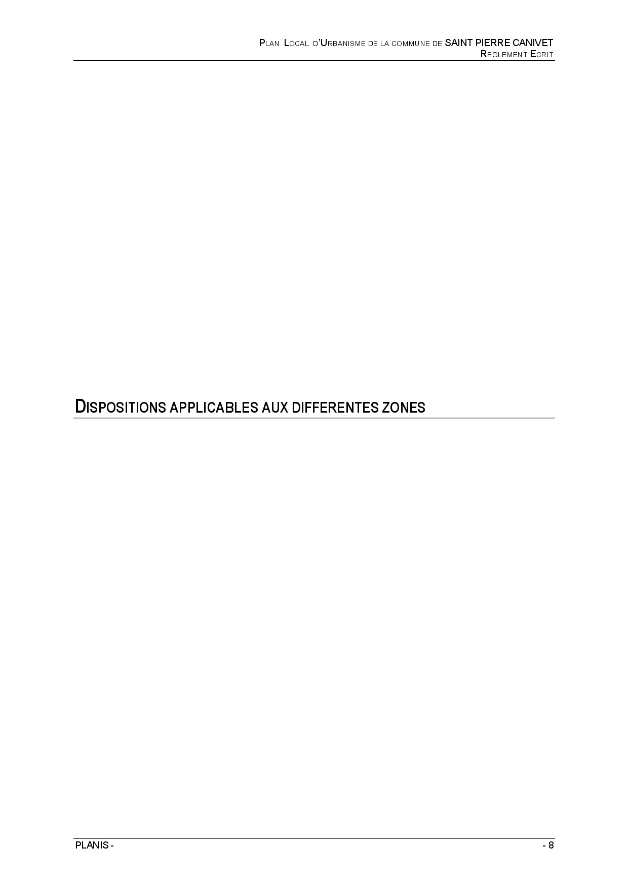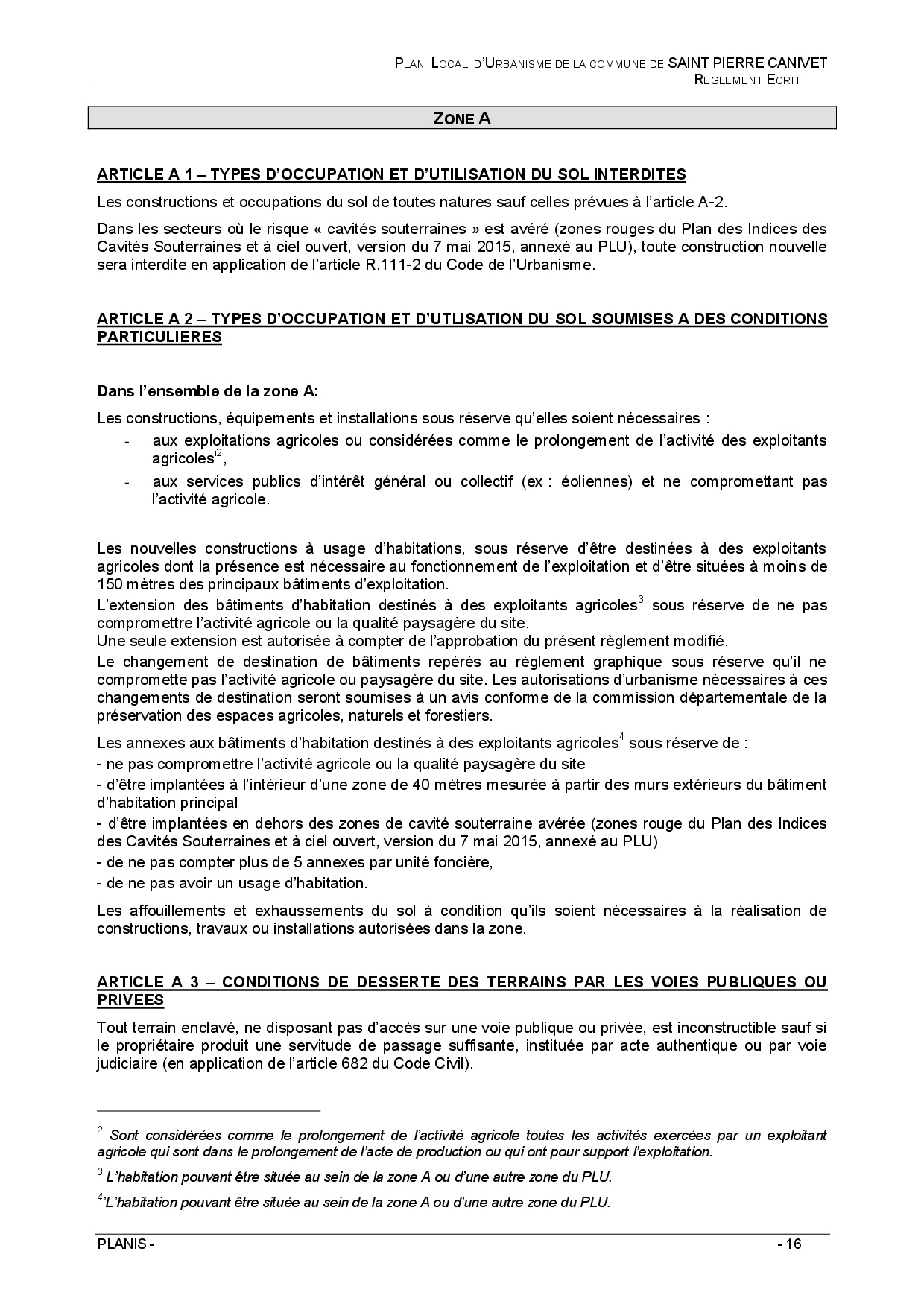 Le plan local d’urbanisme de la commune de Saint Pierre-Canivet a été adopté par le conseil municipal le 26 avril 2010 puis modifié par la délibération n°2016-34 du 12 décembre 2016.