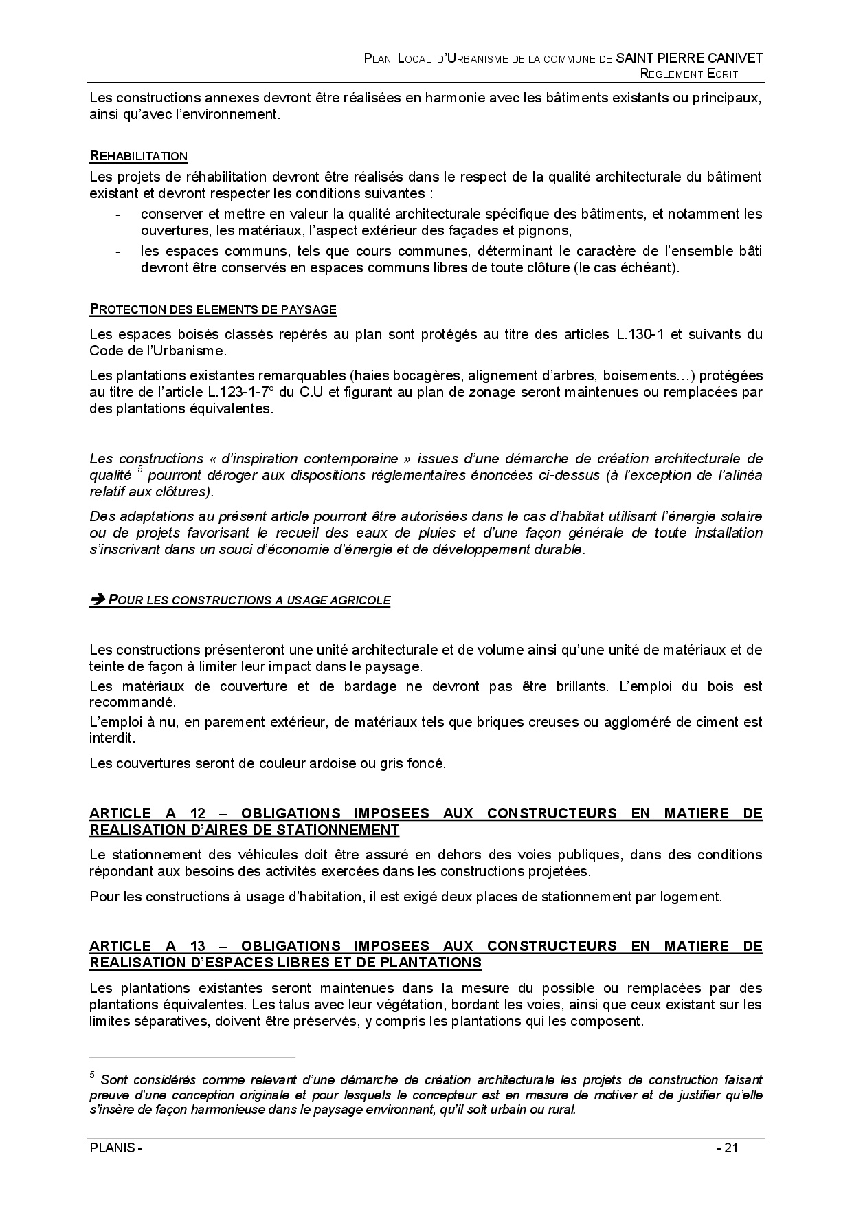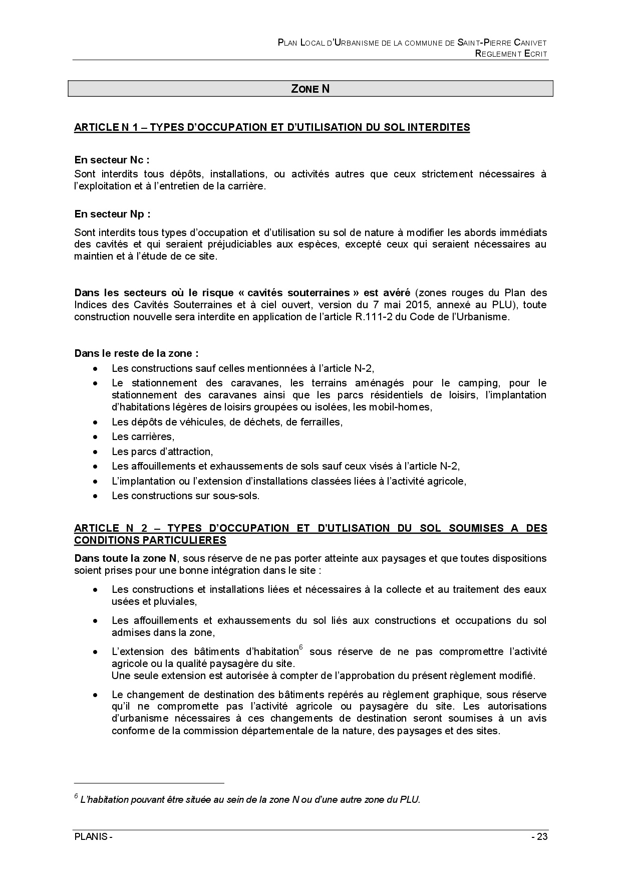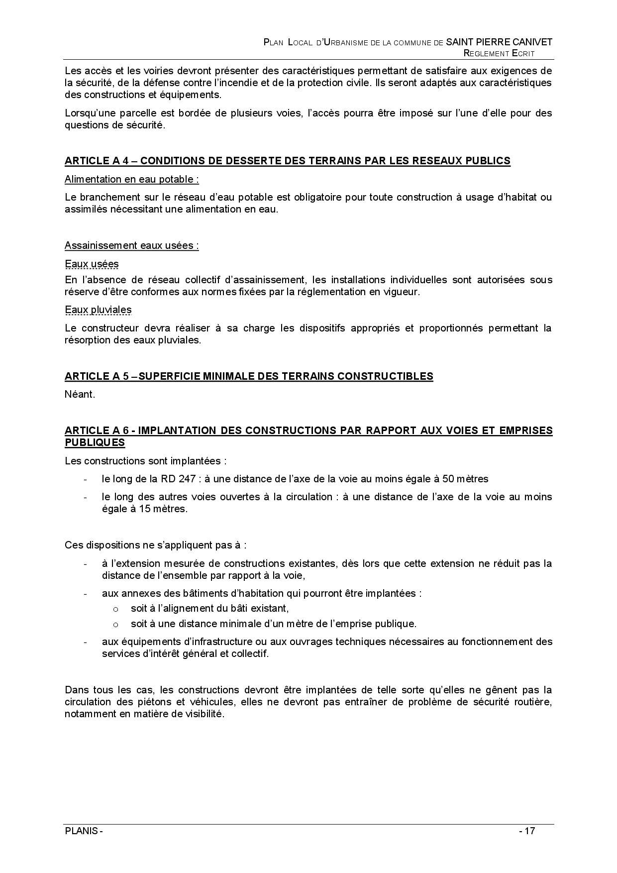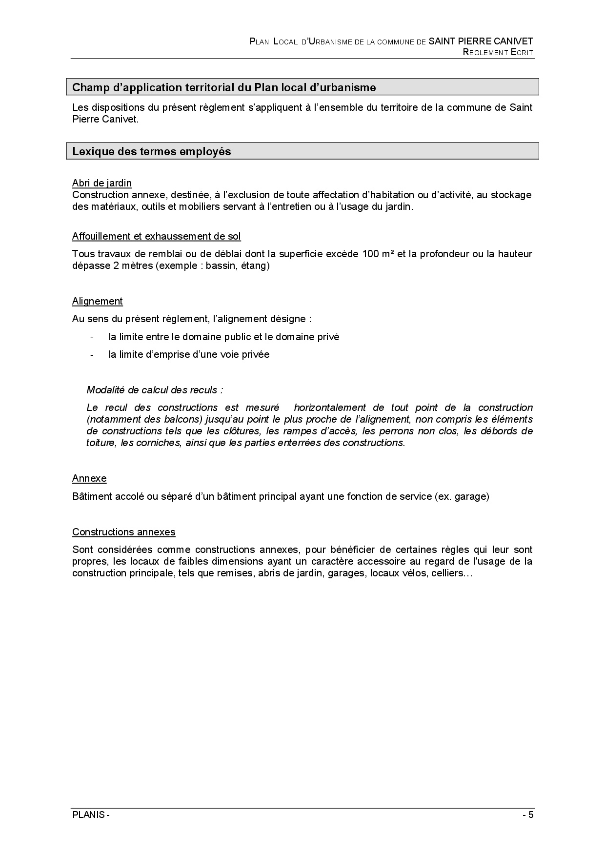 Le plan local d’urbanisme de la commune de Saint Pierre-Canivet a été adopté par le conseil municipal le 26 avril 2010 puis modifié par la délibération n°2016-34 du 12 décembre 2016.